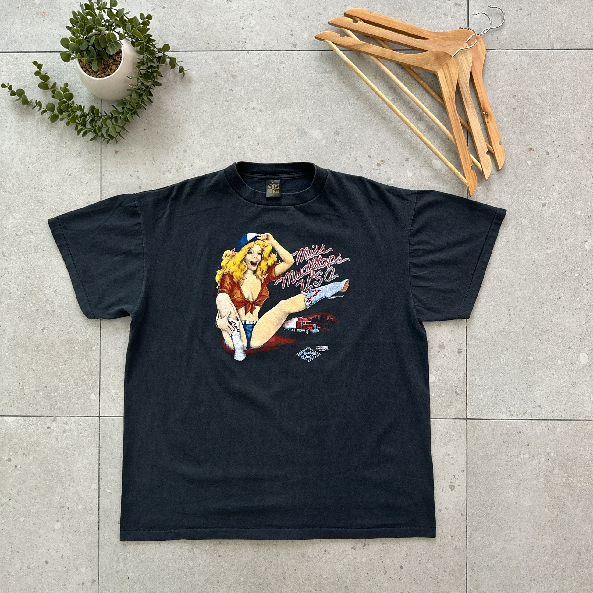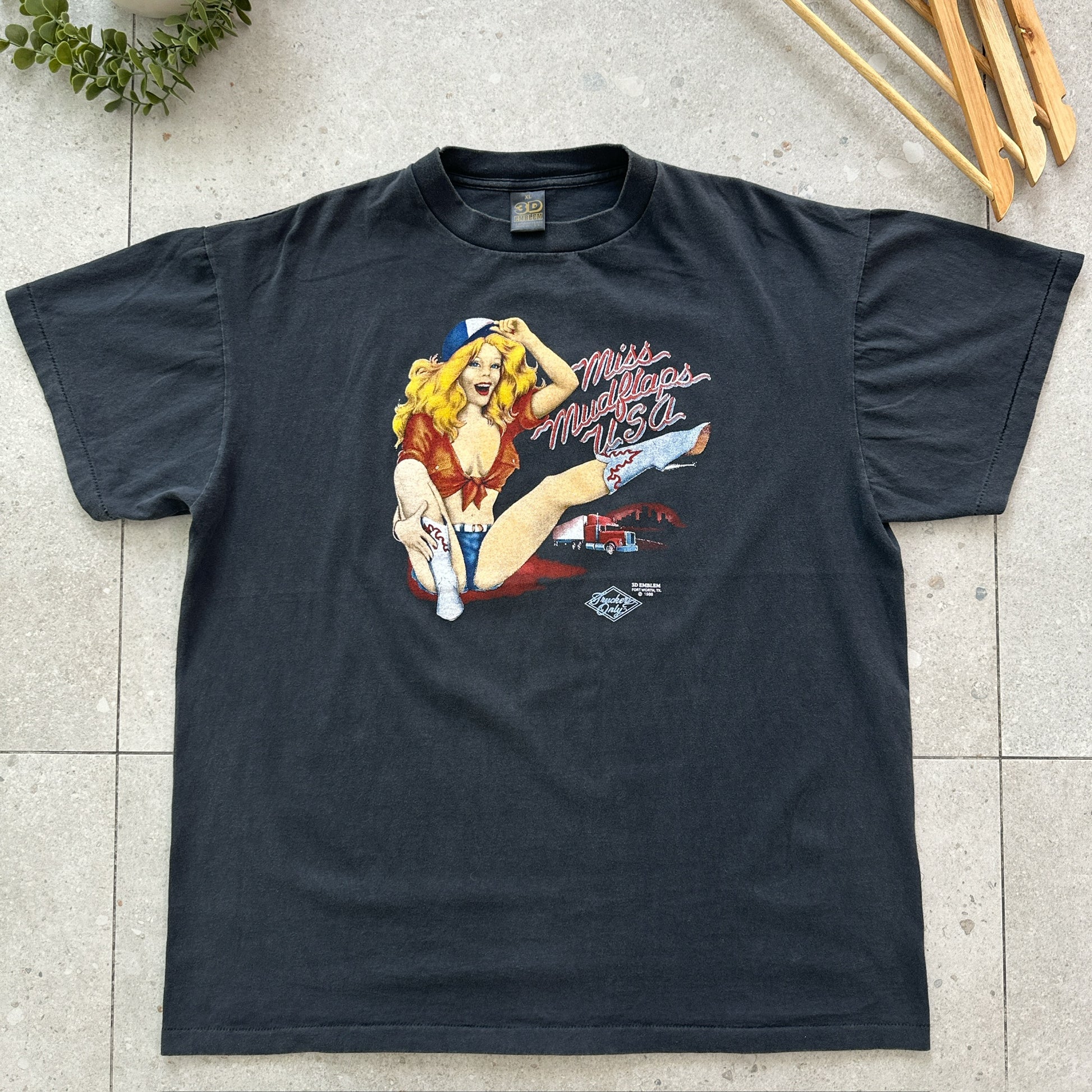 Miss Mudflaps USA celebrates the iconic 1988 competition that crowned America's most spirited automotive enthusiast. This vintage piece captures a pivotal moment in pop culture history, when custom car culture reached its peak and mudflap fashion became a statement of style. Perfect for collectors of retro Americana, automotive memorabilia, or anyone nostalgic for the bold aesthetics of late-80s car culture. A genuine artifact from an era when personalizing your ride was an art form.
