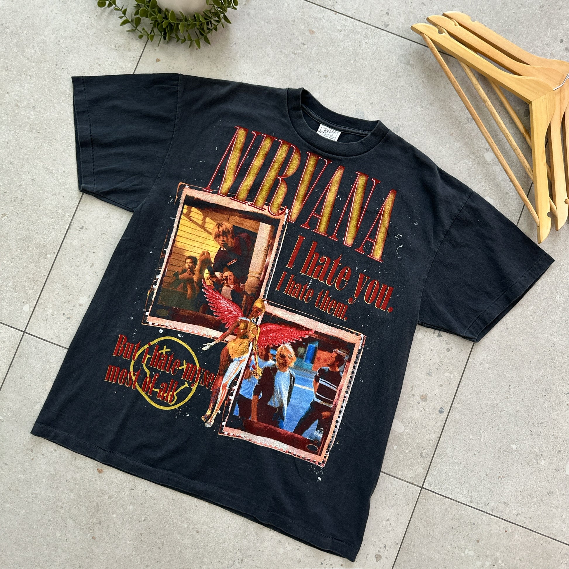 # Nirvana - (I hate you. I hate them.) Explore this iconic piece of grunge history. This product captures the raw energy and rebellious spirit of one of music's most influential bands. Whether you're a devoted fan or a collector of alternative rock memorabilia, this item celebrates the legacy of a generation-defining sound. Perfect for displaying your appreciation of 90s culture and the artists who shaped modern music. A must-have for enthusiasts seeking authentic vintage appeal.