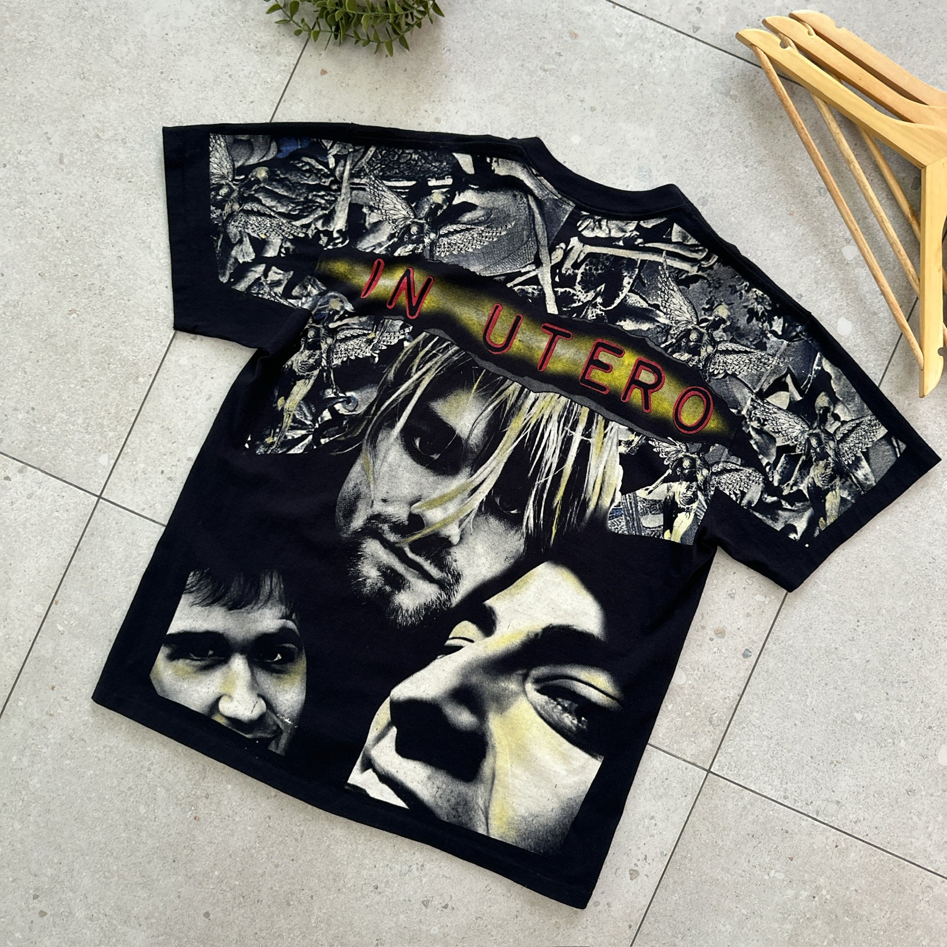 Nirvana - In Utero Graphic Tee This striking graphic tee pays homage to Nirvana's landmark 1993 album "In Utero," one of the most pivotal releases in alternative rock history. The design captures the album's bold aesthetic and cultural significance, making it an essential piece for devoted fans and collectors. Featuring authentic band artwork, this tee serves as a wearable tribute to the era that defined a generation's musical landscape. Built for lasting wear, it combines vintage appeal with contemporary comfort, ideal for those who appreciate both music history and quality apparel.