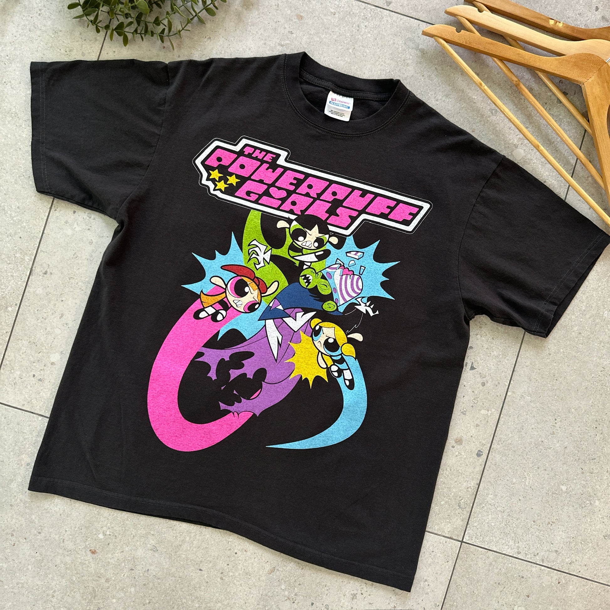 Celebrate the iconic trio with this classic Powerpuff Girls tee. Featuring the beloved characters Blossom, Bubbles, and Buttercup, this vintage-inspired design captures the essence of the cult-favorite animated series. Crafted from quality cotton, it offers comfortable everyday wear with nostalgic appeal. Perfect for fans of 90s pop culture and animation enthusiasts seeking a statement piece that blends retro charm with contemporary style.